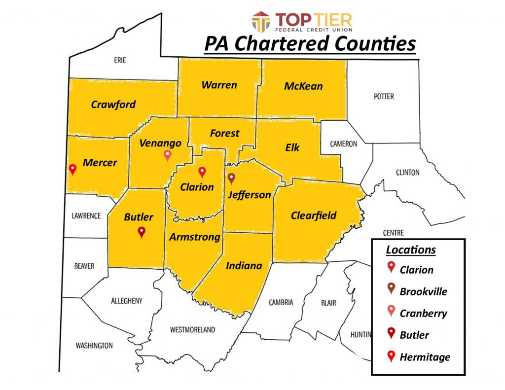 You are eligible to join, if you: live, work, worship, attend school or regularly conduct business in Clarion, Jefferson, Forest, Venango, Butler, Armstrong, Mercer, Crawford, Warren, McKean, Elk, Indiana or Clearfield County in Pennsylvania.