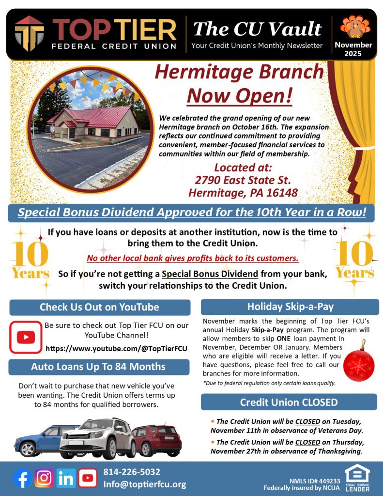 (814) 226-5032 | info@toptierfcu.org | Routing Number: 243380192 | Contact Us | | | |